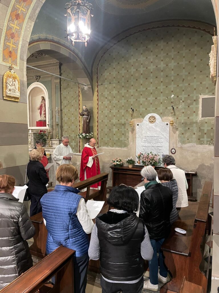 Il piccolo gruppo dei pellegrini occimianesi (in occasione del 253° anniversario della sua morte) si è unito agli amici della Parrocchia di S. Maria celebrando l’Eucaristia (per l’occasione presieduta dal prevosto di Occimiano) che, nell’omelia, ha messo in rilievo l’invito alla santità, chiamata che il Signore fa a ciascuno di noi, attraverso l’esempio di sant’Ignazio di Antiochia (nella ricorrenza liturgica) e del servo di Dio padre Bonaventura da Occimiano. Occorre essere testimoni di Gesù, con il coraggio di s. Ignazio e nella fedeltà alla propria vocazione come padre Bonaventura. E che dire della vocazione missionaria di padre Bonaventura, per 10 anni in Brasile (nello stato di Bahia) prima di far ritorno in Monferrato ed essere evangelizzatore con la sua predicazione e testimonianza di vita santa?