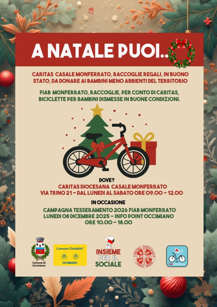 Significativa poi la presenza della FIAB (associazione che accoglie gli amici della bicicletta) che ha scelto Occimiano come “comune ciclabile” per la sua campagna di tesseramento (nelle varie formule associative) presso il Punto informativo di piazza Oratorio don Bosco, a partire dalle 10 del mattino. Sono state raccolte da FIAB Monferrato anche alcune biciclette in buono stato da regalare a bambini meno abbienti del territorio, partecipando all’iniziativa della Caritas di Casale M. (“A Natale poi…”).la campagna associativa prosegue ogni giovedì presso la sede casalese di via Garibaldi.