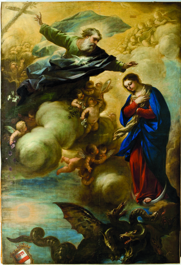 L’iconografia mariana è particolarmente ricca. Tra i tanti che si sono cimentati c’è Luca Giordano, pittore napoletano del XVII secolo, talento protagonista dell’arte barocca europea, nonché uno dei pittori più prolifici di tutti i tempi. L’opera, nel Museo diocesano di Cosenza (3mt x 2) è datata tra il 1665 ed il 1666, realizzata per la chiesa dei Cappuccini della città.
